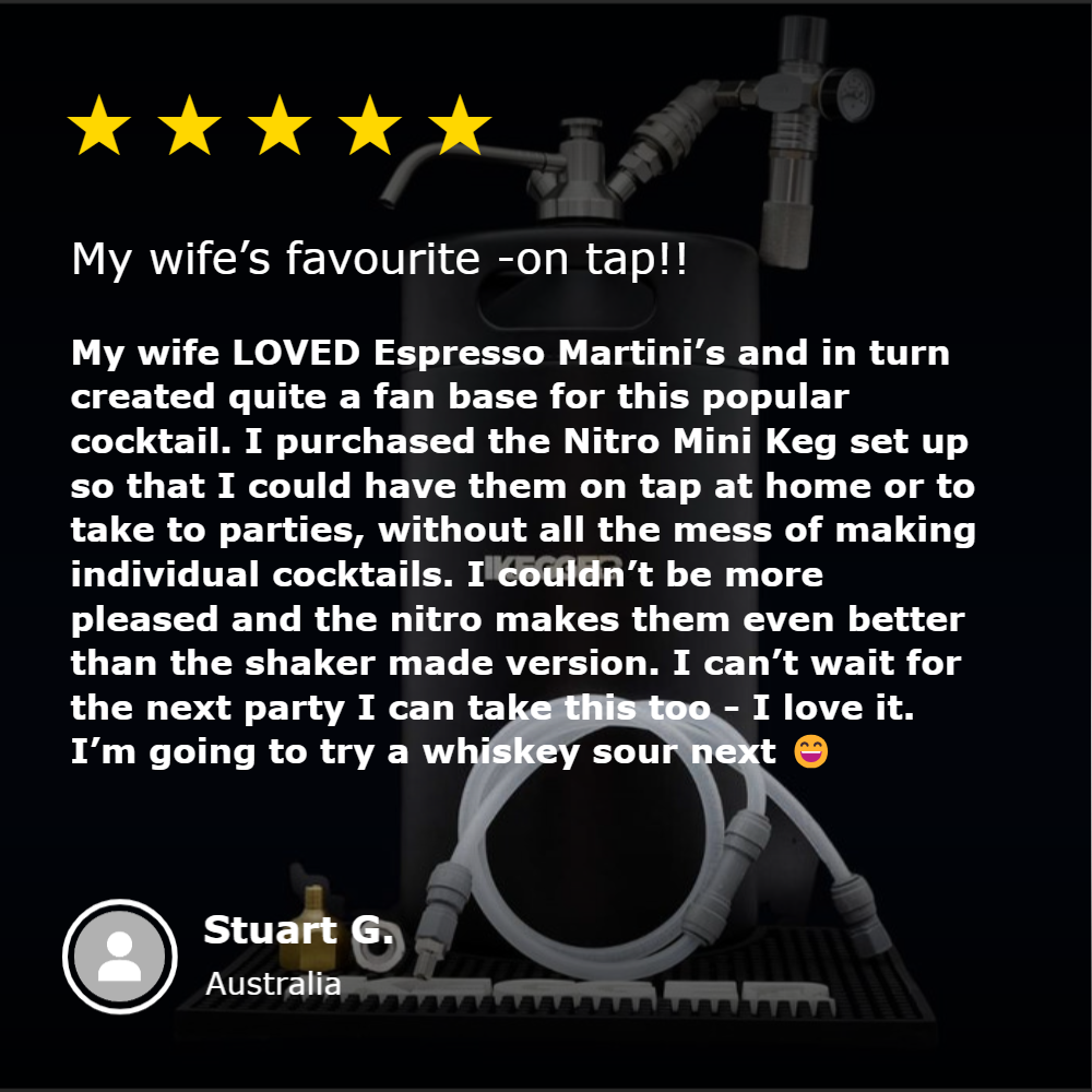 Whether that's beers on the boat, nitro coffee at the office, G&T by the pool, or espresso martinis on tap for a cocktail party.